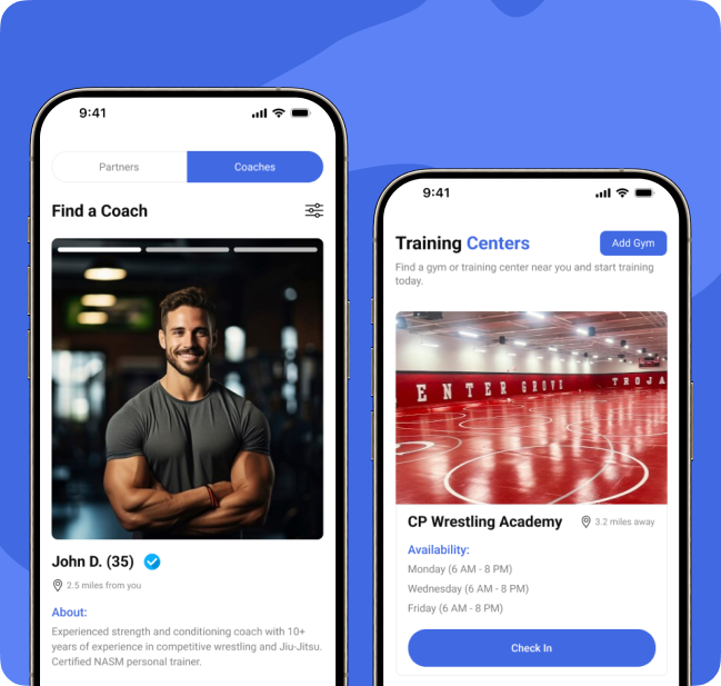 Use our easy-to-navigate interface to find training partners or coaches based on your needs—whether it’s wrestling, jiu-jitsu, strength training, or more.